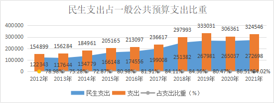 看数字民生,写满为民情怀。民生,历来备受社会各界关注。过去这10年,我们举全县之力对民生投入保障可谓是下足了真功。民生投入从2011年的8.2亿元增加到2021年的27.27亿元,投入比重从75.59%增长到84.02%,年均增速达13.66%,其间2012年、2015年、2018年最快增速分别达48.8%、23.27%、26.32%。2012年以来,县财政始终把保障和改善民生作为财政工作的出发点和落脚点,进一步调整和优化支出结构,盘活存量,用好增量,七个“优先”保障民生领域各项支出,10年间民生投入达197.16亿元。一是教育保障优先,全面落实教育发展战略,教育投入39.41亿元;二是文体保障优先,构建公共文化服务体系,文化体育与传媒支出2.51亿元;三是社会保障优先,完善社会保障体系建设,社会保障支出36.35亿元;四是卫生健康优先,全面推进健康武定建设,卫生健康投入28.28亿元;五是节能环保优先,支持打赢碧水蓝天保卫战,节能环保和城乡社区环境卫生等支出13.88亿元;六是“三农”发展优先,全力支持乡村振兴战略,农林水支出52.94亿元;七是住房保障优先,确保住有所居和安全稳固,住房保障支出14.69亿元。