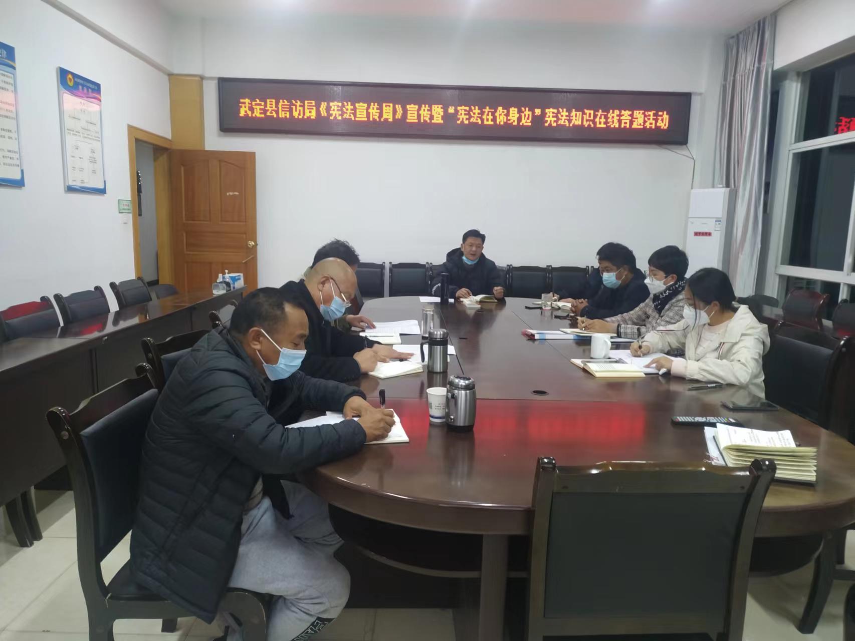 宪法是中华人民共和国母法,是所有法律法规编制依据。2022年12月4日是第九个国家宪法日,武定县信访局组织干部职工开展了宣传学习活动。集中收看中央广播电视台CCTV1特别节目“宪法的精神 法制力量——2022年度法治人物”,全体干部职工积极参与了云南普法微信公众号开展的“宪法在你身边”知识在线答题活动。