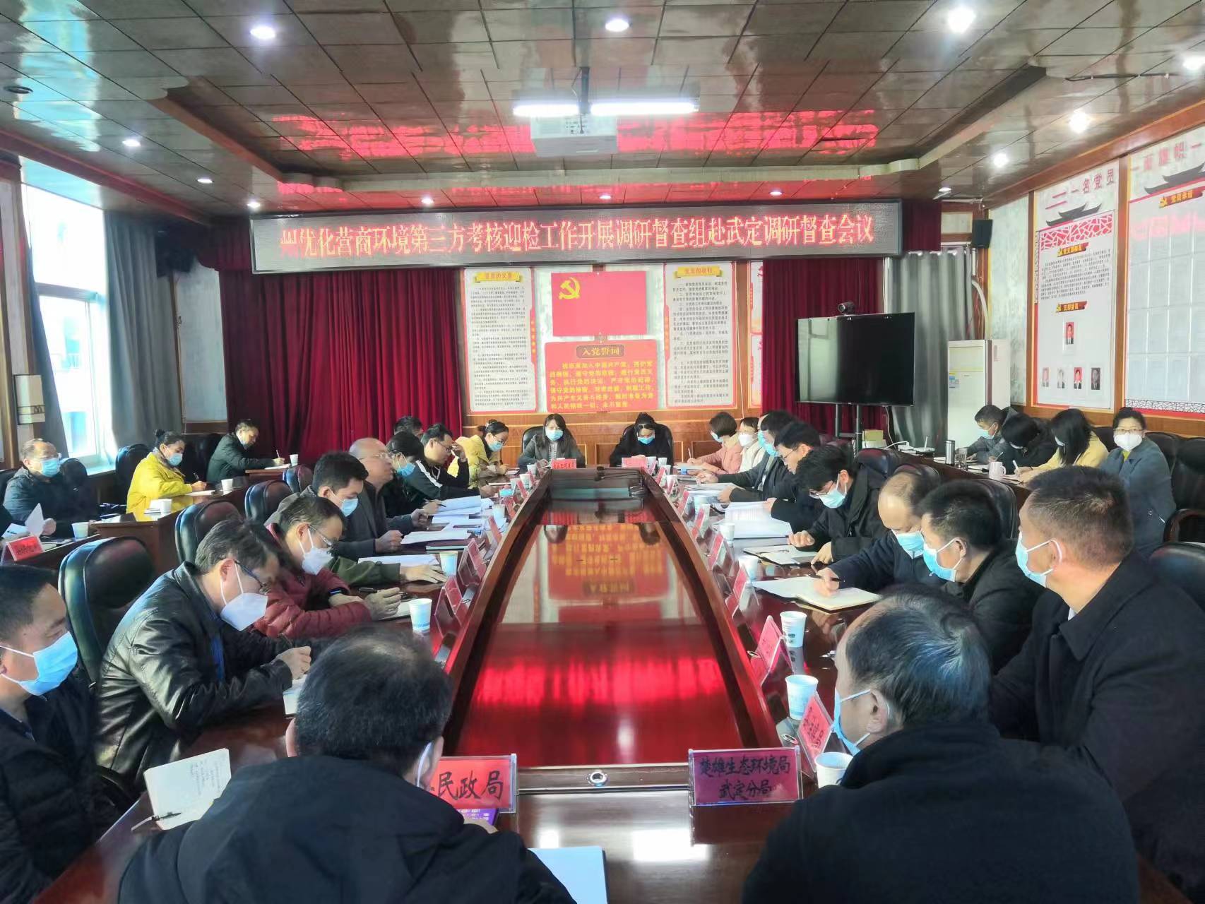 12月7日,州发改委副主任王文书一行3人到武定开展优化营商环境第三方考核迎检工作的准备情况进行督查指导,武定县召开了调研督查会议。