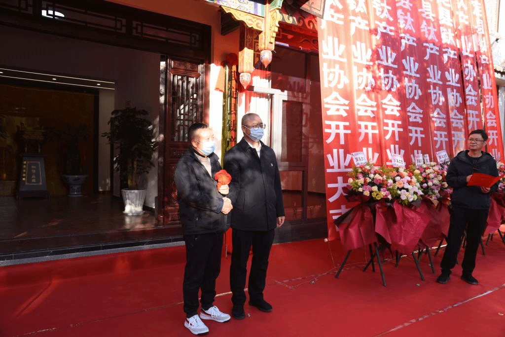 在筹划工作全面完成后,2022年12月8日,武定县钛产业协会召开成立大会,县委罗如贵书记,县委常委、常务副县长林昆,县人大常委会副主任郑钧,县级有关部门、狮山镇人民政府的领导、协会会员单位负责人共50多人参加了成立大会。会议由县委常委、常务副县长林昆主持。会上,县工信商务科技局宣读了中共武定县钛产业协会党支部成立的批复,县政务服务管理局宣读了武定县钛产业协会成立的批复,县委罗书记为协会进行了揭牌和授印,协会首任会长周学军进行了表态发言。