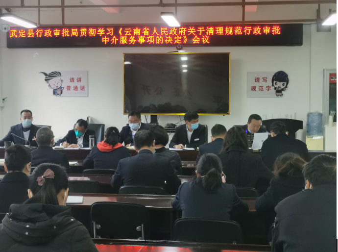 武定县政务服务管理局接到《楚雄州人民政府办公室转发省人民政府关于清理规范行政行审批中介服务事项的通知》等文件后,高度重视,组织各部门认真学习、专题研究,