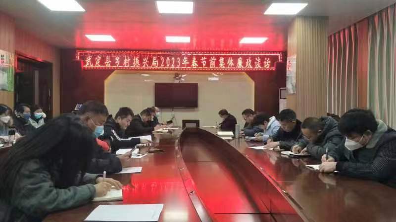 春节将至,为进一步强化贯彻落实中央八项规定精神及省州县具体实施细则,持之以恒纠“四风”,按照《关于做好2023年元旦春节期间正风肃纪工作的通知》精神,营造风清气正的节日气氛,武定县乡村振兴局组织召开了2023年春节前廉政提醒集体谈话会议,坚持早提醒、早纠正,切实筑牢拒腐防变的思想防线,推动全局干部职工以“节点”为“考点”,把“节日”过成“洁日”。