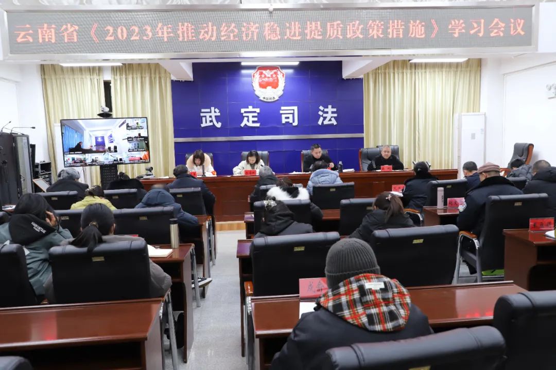 1月30日晚,在春节收假后的第一个“大学习”会上,武定县司法局召开专题会议,全面、完整、准确学习《2023年云南省推动经济稳进提质政策措施》,对司法行政部门护航政策措施落实落地进行安排部署。