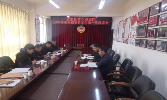 2月15日,武定县招商委第三招商团召开2023年第一次招商引资工作联席会议,会议由县政协主席、第三招商团团长周廷质主持。县政协办公室、县市场监管局、县医保局、县应急局等第三招商团成员单位主要领导,以及县投资促进局有关人员参加会议。会议明确了2023年招商引资目标任务、重点招商项目以及下步工作打算。