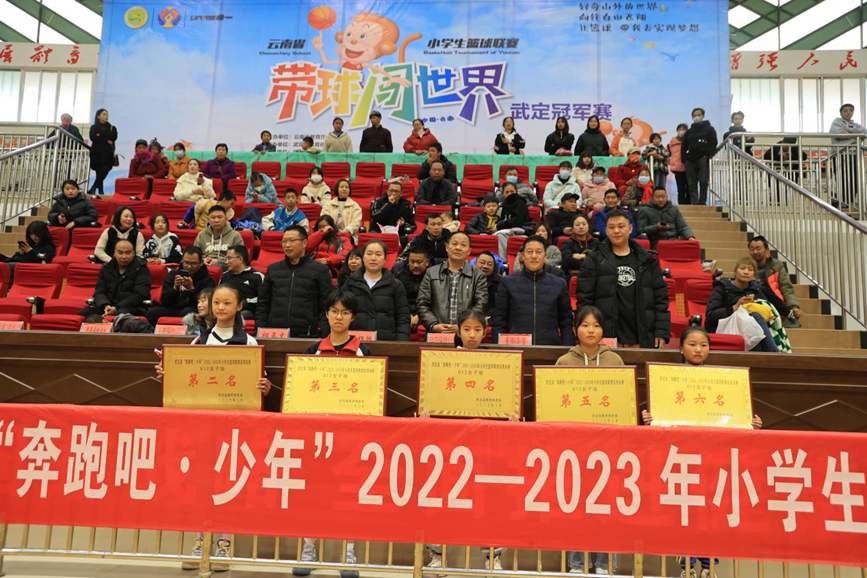 武定县2022-2023年小学生篮球联赛县级决赛于2023年2月26日上午在武定县体育馆顺利闭幕。本次比赛由武定县教育体育局主办,武定思源实验学校、香水小学、武定罗婺少年篮球培训学校共同承办。比赛共分为U12男子组、U12女子组、U10混合组,共有16所学校43支男女队、590多名运动员、教练员、裁判员参与了比赛。