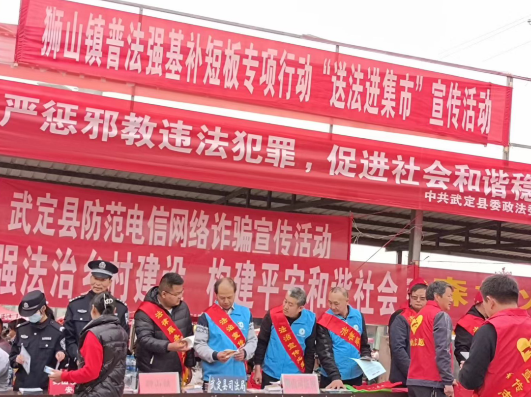 为了进一步增强农村广大群众的依法维权意识,广泛营造“普法强基”工作氛围,3月12日上午,狮山镇“普法强基补短板”专项行动领导小组组织司法所、派出所、综治办、卫生院、镇妇联、经济发展办、社会保障和为民服务中心、水务服务中心、农业农村服务中心、林草中心等领导小组成员单位和西和村委会普法强基工作队,利用集市人流量较大的良好契机,到县城北农贸市场开展“送法进集市”普法宣传活动,为群众送去便捷、精准的法律服务。