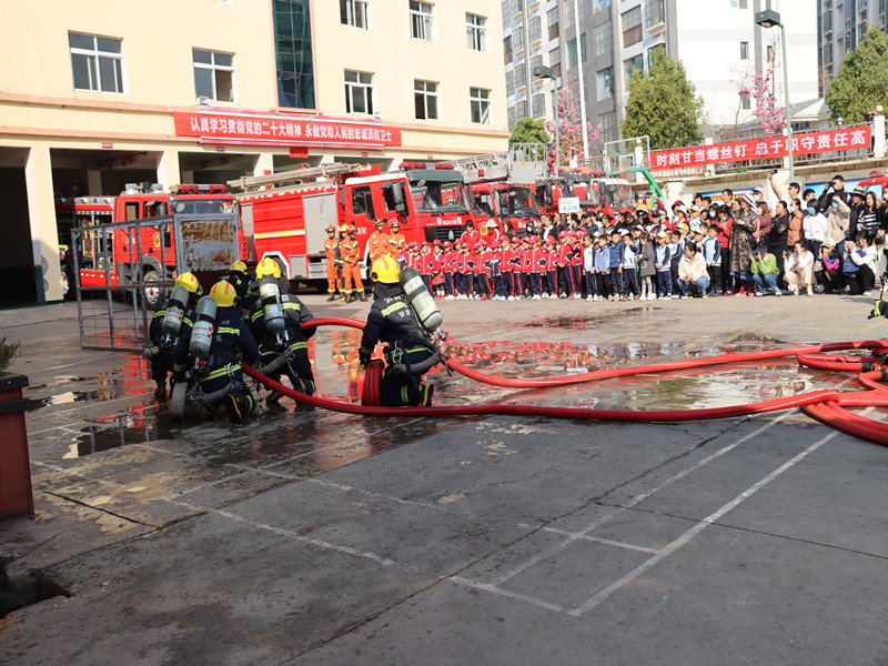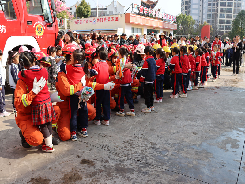 期间,消防救援人员还为在场师生家长进行了出水灭火演练,模拟火灾场景人员被困展开救援。活动最后,孩子们给消防员叔叔送上了亲手做的手工和集体舞蹈,并和全体消防救援人员拥抱、合影留念。