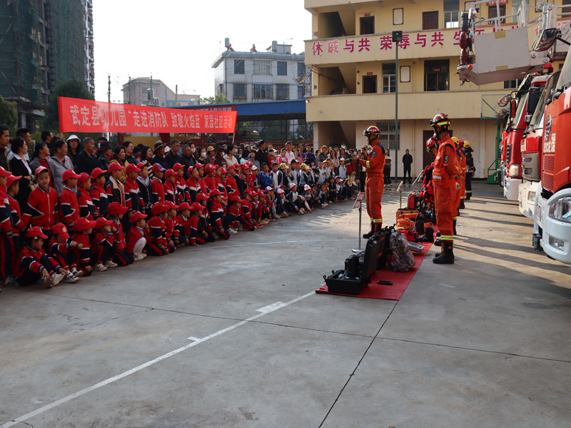 家园社区活动是幼儿园教育的重要组成部分,是做好幼儿园教育工作的重要保证。近日,武定县幼儿园组织大班幼儿、家长共计400余人开展了“走进消防队致敬火焰蓝”家园社区活动,与武定县消防救援大队的消防救援人员来了一次“零距离”接触。