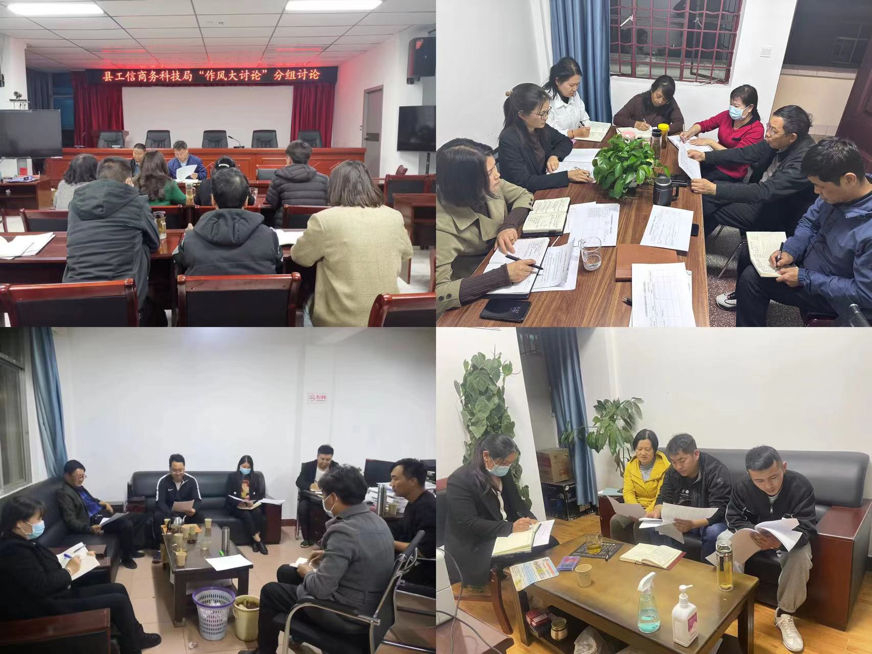 为贯彻落实党的二十大精神和习近平总书记关于作风建设的重要论述,着力转变干部作风,提振干事创业精气神,切实加强机关效能建设,县工信商务科技局利用周一晚大学习实践集中组织开展“作风大讨论”主题实践活动,全体干部职工共计37人分4组参加了讨论。