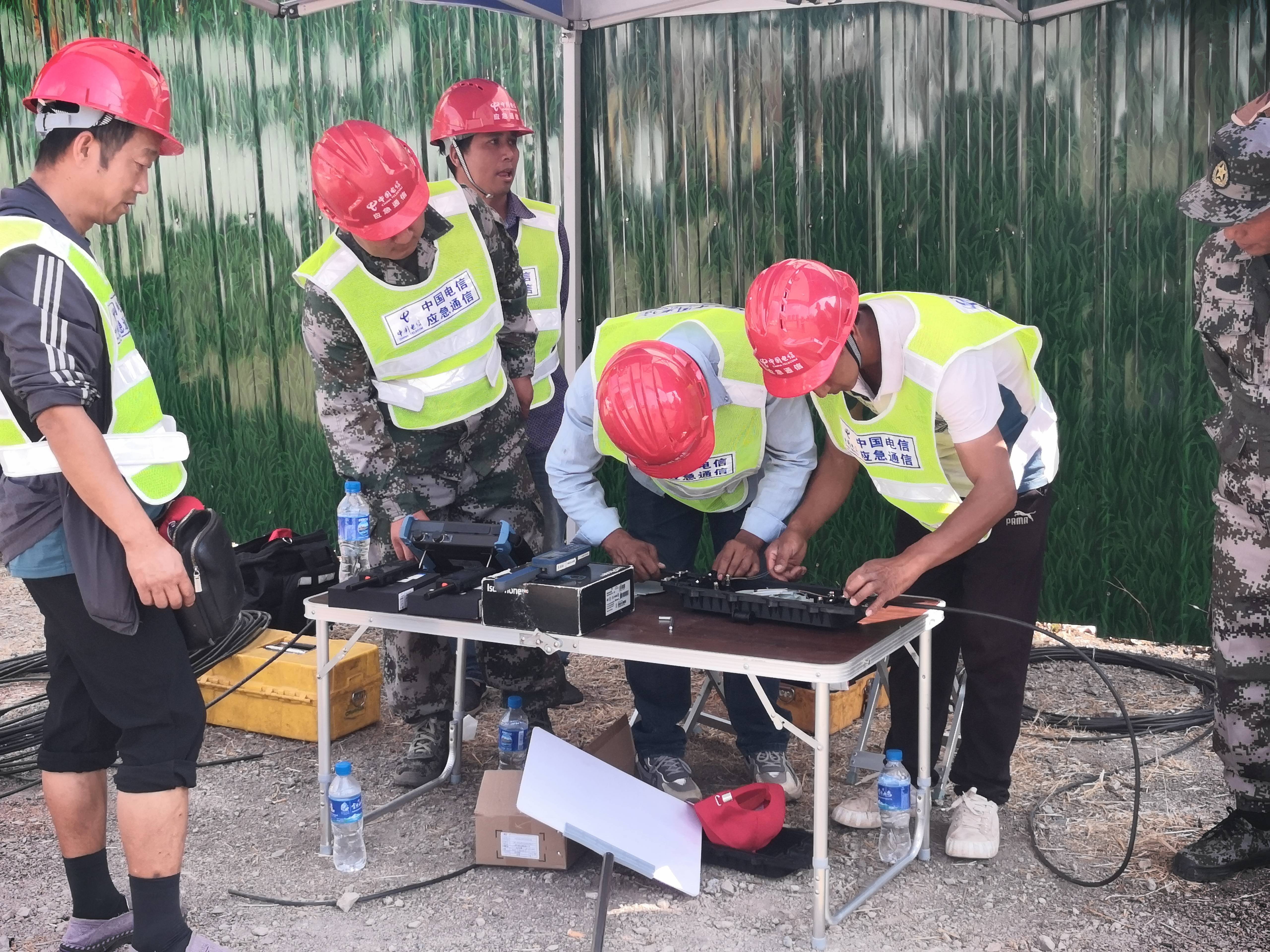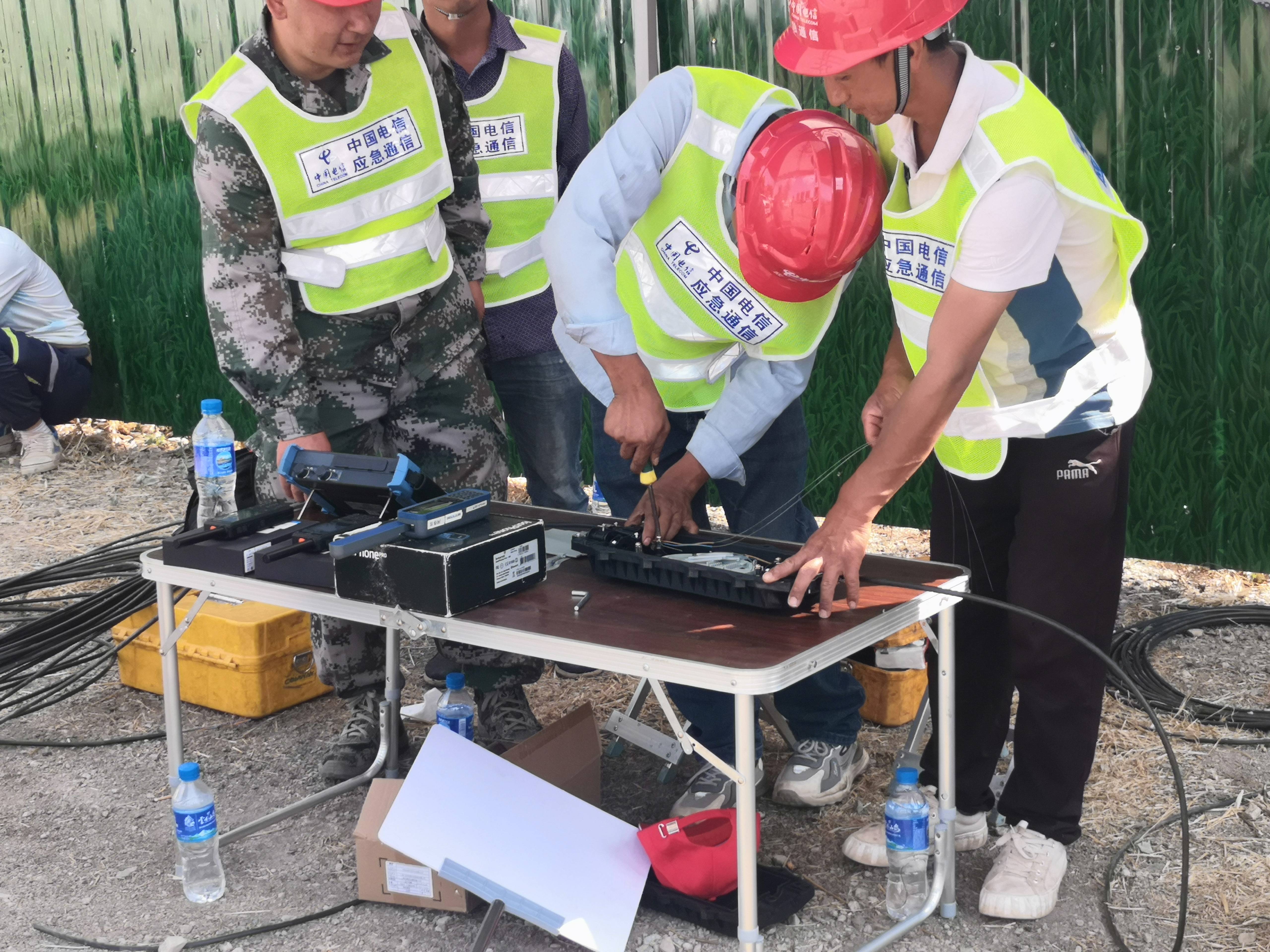 此次演练模拟地震后造成通信干线网络中断、重要通信枢纽遭到破坏,应急通信保障组根据震后灾情和受损程度,快速部站,建立应急通信保障网络。出动抢险车辆4辆,技术保障队员25名,配备了小型应急通信保障车2辆,应急发电车1辆,卫星电话4部,通信人员现场熔接光纤、抢修基站、修复光缆并指导人员使用应急电话联络外界。