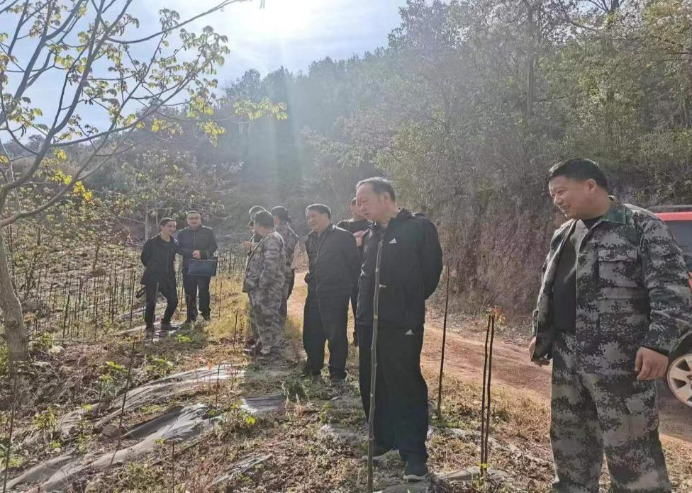 在庄良村,余卫东到山南香椿种植基地察看香椿种植情况,听取基地负责人关于香椿产业发展情况汇报。