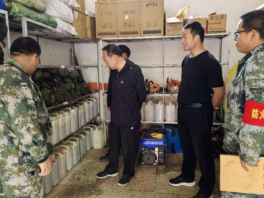 在高桥镇林草中心,余卫东查看了防火物资储备、扑火队伍建设管理和应急值守情况。