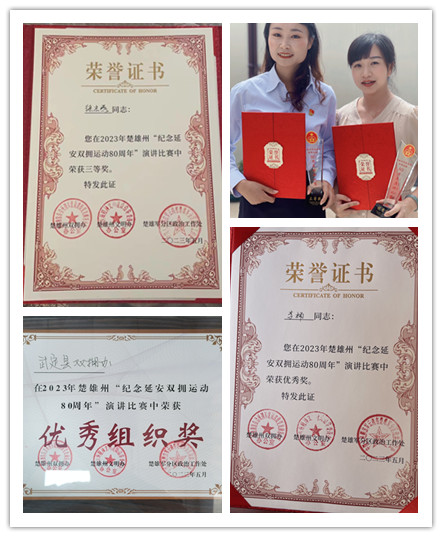 来自楚雄州各双拥工作领导小组成员单位、驻楚各部队单位及各县市双拥办选送的43名选手参加了比赛,比赛共评出一等奖2名、二等奖4名、三等奖6名、优秀奖10名。武定县双拥办经过精心筹备,细致甄选,最终组织了由4名演讲选手组成的武定代表队参加了本次比赛。在武定县双拥办工作人员高度负责的组织和带领下,各位选手在赛前认真钻研、刻苦练习,经过两天的艰苦鏖战,来自武定县万德小学的徐志燕老师喜获三等奖,来自武定中医院感控科的李楠主任荣获优秀奖,武定县双拥办获得优秀组织奖。