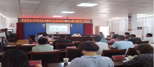为提高食品安全事故应急处置水平,锻炼应对突发食品安全事故的组织指挥、协调配合、快速反应和高效处置的能力,武定县市场监督管理局近日在局机关四楼会议室开展了食品安全突发事件应急演练。本次演练邀请了县食安委相关成员单位、各乡镇分管食品安全领导、相关业务科室负责人等60余人参加。