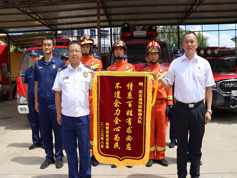 近日,共青团武定县委深入武定县消防救援大队,开展“八一”建军节走访慰问暨大学生“返家乡”暑期社会实践主题团日活动。团县委全体职工、2023年“返家乡”暑期社会实践大学生等共计50余人参加活动。