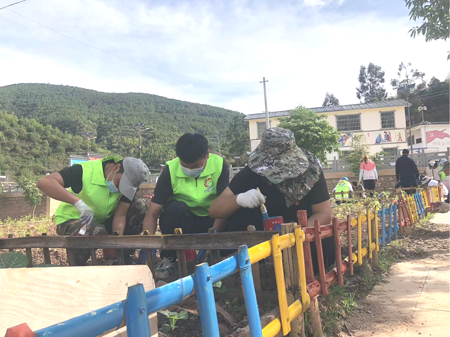 彩色漆“刷”出新面貌。在乡主要领导的带领下,每位干部职工拿上派发的彩色颜料对编制好的竹篱笆装扮上彩色“新衣”。活动现场干部职工们顶着烈日,不怕酷热边干嘴里边念叨着“红黄蓝、蓝红黄、黄蓝红”干得热火朝天,装扮一新的篱笆在道路两旁分外耀眼,一眼看上去满眼都是村庄的宁静与闲适。