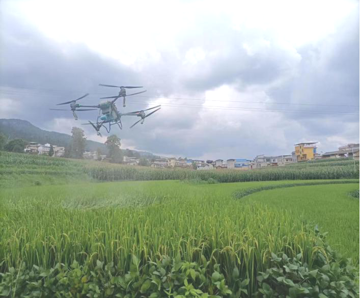 由于前期干旱,现持续高温,水稻病虫害危害严重。当前正值水稻生长旺期,是水稻二化螟、三化螟、纹枯病、稻瘟病等病虫害防治的关键时期。为切实抓好水稻病虫害防治,确保粮食增产增收,近日,武定县农业农村局抢抓时机,组织无人机专业团队及农业科技人员深入生产一线,利用智能化植保无人机开展稻田病虫害统防统治工作。