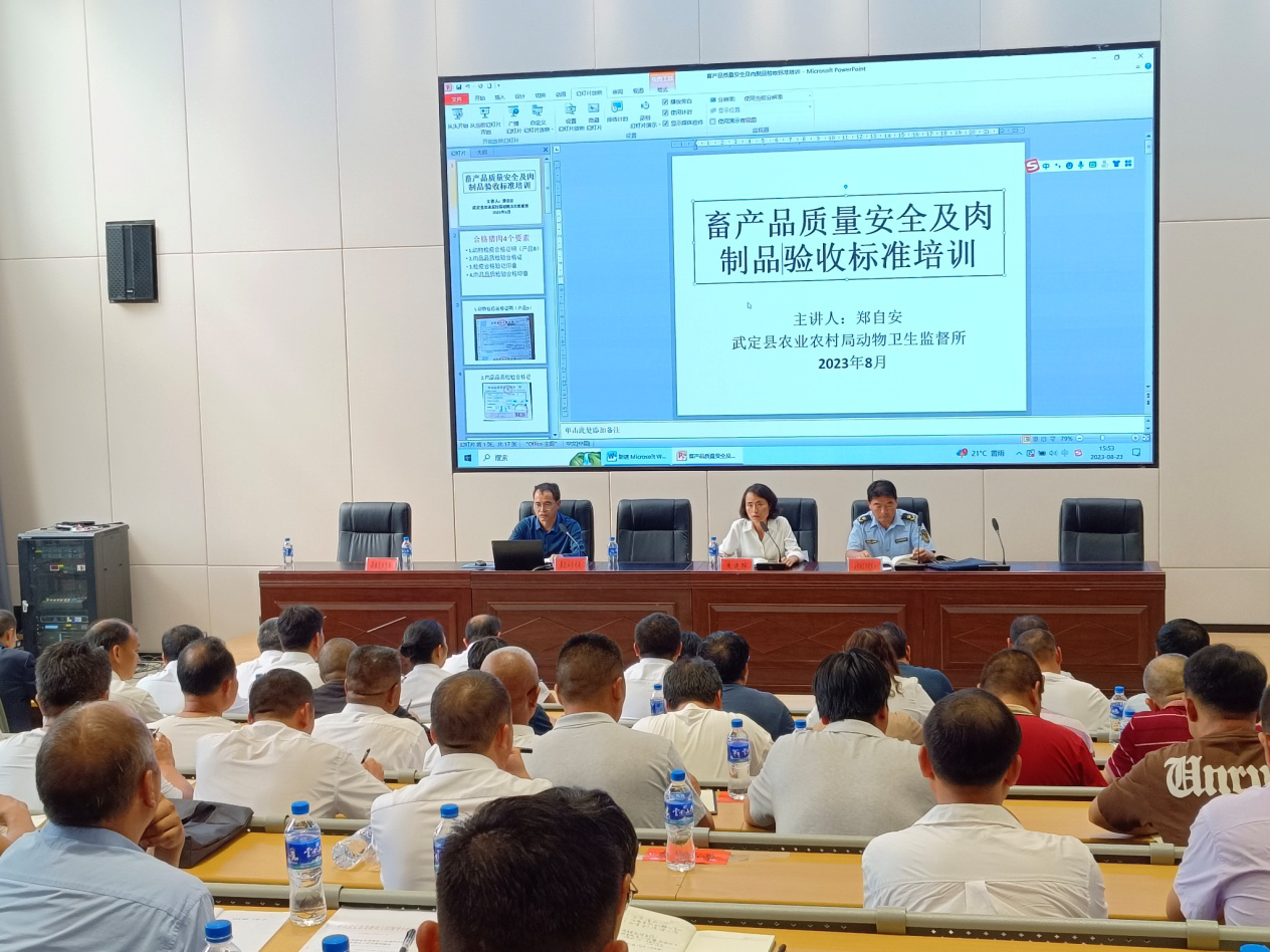 为进一步提高学校食堂管理人员及后勤保障人员对畜产品质量安全及肉制品验收标准相关知识,保障学校餐桌上肉品质量安全,8月23日,武定县教体局邀请县农业农村局动物卫生监督所负责人在县职业高级中学小报告厅开展《畜产品质量安全及肉制品验收标准》培训,全县各学校校长、总务主任、食堂管理员、学生资助管理人员等参加培训。
