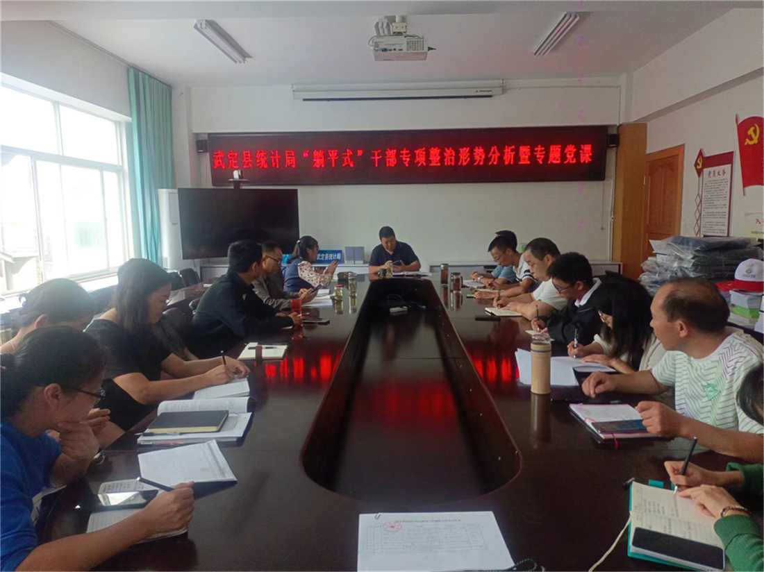 近日,为深入贯彻落实县委开展“躺平式”干部专项整治的部署要求,武定县统计局党组书记张俊平同志以“拒绝‘躺平’做起而行之 奋斗不止的新时代党员干部”为题向全体党员干部讲授专题党课。