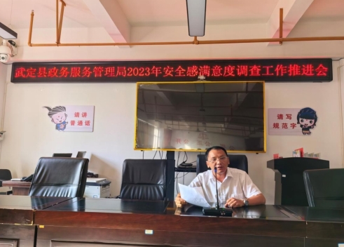 钱嘉庆副局长组织召开2023年提升安全感满意度工作推进会,进一步细化了安全感、满意度提升工作:一是请干部职工认真在上班期间做好0871-12340电话接听,下班后及时做好座机号码呼叫转移,确保电话无漏接。二是继续做好2023年度群众安全感满意度工作的宣传。充分利用好LED大屏功能,持续滚动、强化宣传;向配备座机的各窗口、各股室发放宣传指引牌24个、宣传材料100份;各窗口、各股室上班期间认真细致做好办事群众服务工作,积极宣传,大幅提升群众满意度。三是请各位职工在接听到0871-12340规范回答并及时做好反馈,把接听时间、电话号码、回答情况发在机关工作群,由办公室统一向平安武定工作群汇报,满意度目标100%。