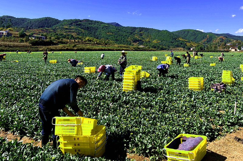强强联合,发挥示范引领作用。公司率先在武定建设蔬菜种植、销售信息大数据中心,为武定蔬菜产业种植户提供有效的蔬菜产业信息服务;与多家省内外大专院校实施强强联合,在园区建设蔬菜专家工作站,提供强有力的技术支撑,为蔬菜产业提供新技术运用推广平台;公司提出建立“大产业+新主体+新平台”发展思路,为加快培强壮大园区联农带农富农经营主体,采取政府投入、企业租赁生产经营的运营模式,引入4家企业再度入驻,专业生产以广东菜心为主的绿色蔬菜,延伸“产供销”链条,产品主供上海、深圳等地,不断拉长全县高原特色蔬菜产业链,提升产业发展的可持续性。2023年1-10月,基地累计生产销售蔬菜2.18万吨,实现产值1.15亿元,实现利润660万元。目前,该园区已逐步形成了育种、育苗、种植、冷链、电商为一体的现代农业生产经营体系,对全县高原特色现代农业的发展起到了示范引领作用。