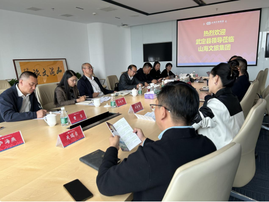 10月31日,中共武定县委书记罗如贵,县委常委、县委办公室主任李文武,县委常委、县委宣传部部长李晓萍,副县长周智荣等一行到北京山海文旅集团考察交流。集团总裁赵佳、副总裁何时印等接待考察团并举行座谈会。