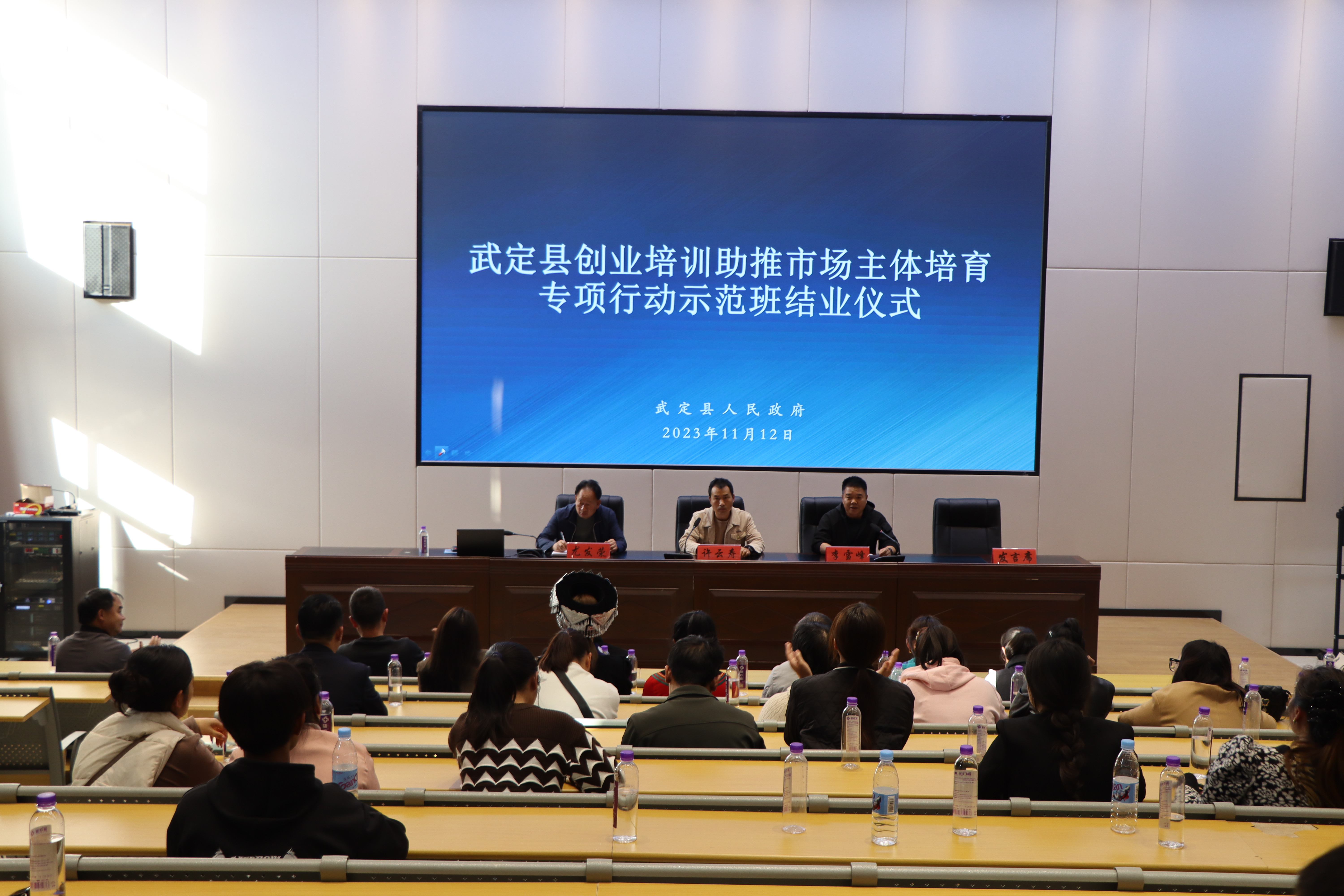 结业仪式上,“示范班”四名优秀学员代表依次上台发言,武定县人力资源和社会保障局党组成员、副局长许云寿为学员代表发放培训合格证书并作结业讲话。他指出:一是要全面推进专项行动。要紧紧围绕“赋动能、搭平台、强培训、优环境、造氛围、优服务”的工作思路,通过实施创业培训及创业扶持政策落实,帮助拟创业和创业初期的创业者树立起正确的创业意识,激发创业热情、提高创业成功率,全力支持更多重点群体投身创业,确保全县2023年底前完成创业培训900人以上目标任务,努力实现创业促进就业的“倍增效应”,为助力全县经济社会高质量跨越式发展注入新动能。二是精准制定培训方案。要按照此次创业培训示范班工作方案的模式扎实抓好落实,针对创业者需求和市场主体培育发展需要,科学定制“一特色、一方案”的创业培训计划,多形式做实做细创业培训,聘请经验丰富、具有实战经验的创业导师进行授课,充分发挥创业指导师作用,确保课程设置具有较强的指导性、针对性和实践性,切实提高初创者的创新创业能力。三是加强协同密切配合。要切实加强组织领导,牢固树立“一盘棋”思想,坚持抓时效、抓细节、抓根本,以创业培训示范班为契机,拓宽各类群体创业服务平台,在工作统筹、资金扶持、创业培训等方面持续发力;要加强创业典范展示搭建创业“宣讲台”,对创业典型的优秀创业事迹进行大力宣传,为其搭建起展示交流、推广合作的大舞台,鼓励和引导重点群体自主创业,以创业带动就业积极助推市场主体培育。四是强化后续跟踪服务。要加强对创业培训参训学员的后续跟踪服务工作,积极完善创业培训后续服务管理体系,充分发挥“楚雄青年创业州长奖”获得者作为创业指导师履职作用,加大创业者的指导和帮扶,及时给予帮助解决创业中遇到的困难和问题,带动和引领更多创业人员成功创业,助推市场主体培育取得新成效。