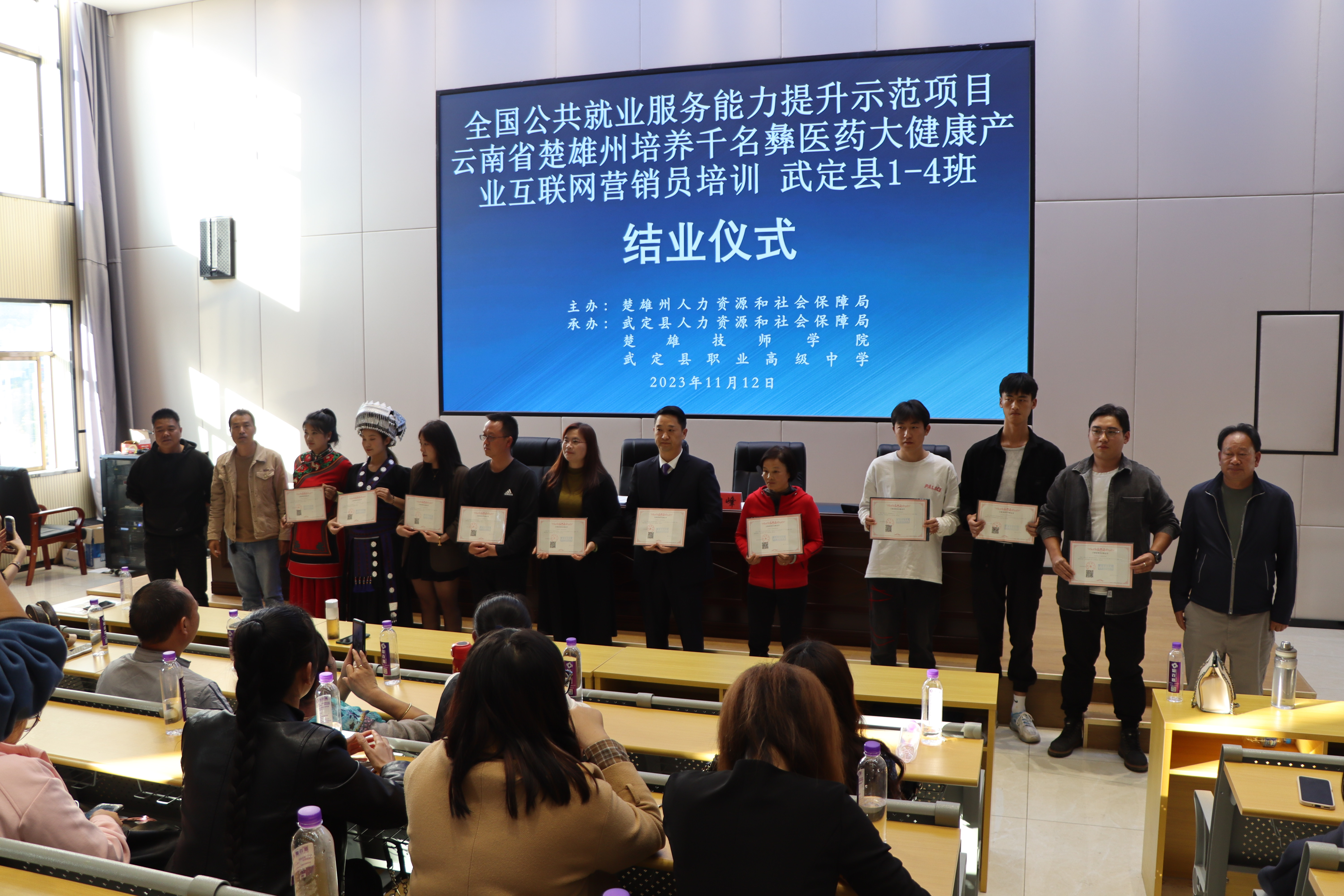 11月12日下午,为期七天的“武定县创业培训助推市场主体培育专项行动示范班”在云南武定乡村振兴学院实训大楼三楼阶梯教室举行结业仪式。参加培训的120名学员成功掌握了网络创业的关键知识和实践技能,全部通过考核,顺利结业!