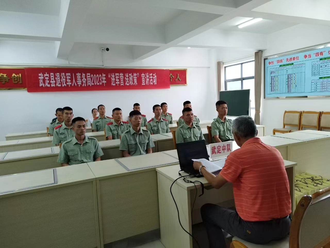 四是组织送法进军营。武定县退役军人事务局到武警武定中队开展了送法进军营主题活动。组织武警官兵学习了国防法、兵役法、军人地位和权益保障法、退役军人保障法等内容。活动还紧贴退伍老兵需求实际,由县退役军人事务局移交安置股股长杨建学同志讲解了退役安置、就业创业、抚恤优待、褒扬激励、服务管理等与退役士兵息息相关的政策知识,并解答了官兵的现场提问。