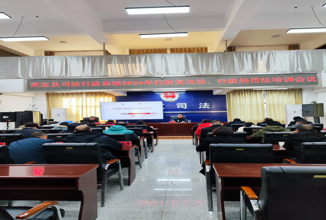 新年伊始,武定县司法系统为认真贯彻落实新修订的行政复议法,结合乡镇赋权改革,顺势而为,于1月8日开启了2024行政复议法、行政处罚法的培训。培训会由武定县司法局局长钱国臣主持。武定县司法局副局长、公职律师、武定县人民政府法律顾问熊俊程对行政执法监督及新修订的行政复议务实进行专题讲授。11个司法所所长及局机关干部职工共41人参加培训。
