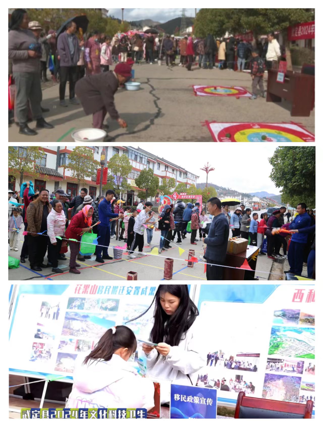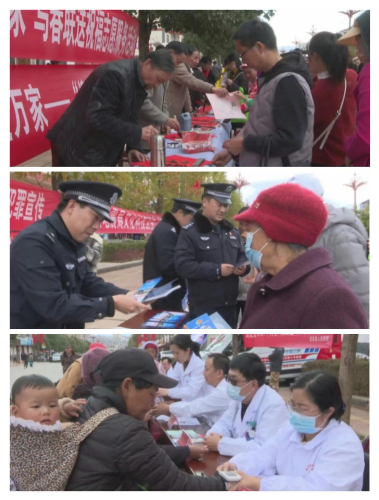县政法和公安部门开展了反电信诈骗知识宣传,县卫健部门组织医院专家为群众开展免费义诊和健康知识宣传,县农业部门开展了种植和养殖业技术宣传,县地震局开展了防震减灾知识宣传,县农商行开展了移民小额贴息贷款政策宣传,县妇联、团委、县人社局等部门组织开展了相关志愿者服务,赢得了大家的点赞与好评。