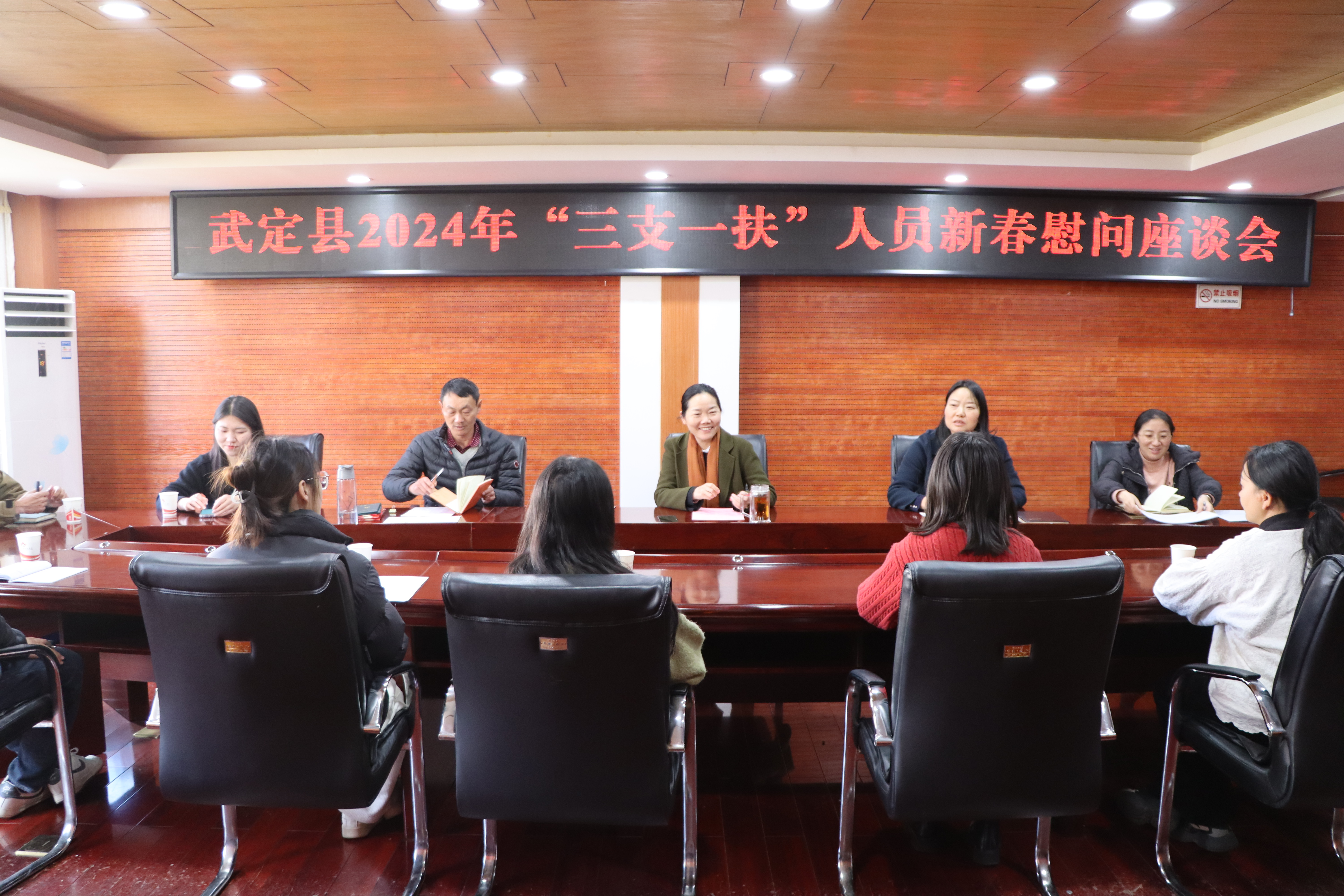 新春佳节来临之际,为深入了解“三支一扶”人员在基层的工作情况,充分体现党和政府对“三支一扶”人员的关怀和厚爱,引导和鼓励更多高校毕业生投身基层工作当中,推动高校毕业生“三支一扶”计划更好实施。1月19日下午,武定县人力资源和社会保障局组织召开了2024年“三支一扶”招募人员新春慰问座谈会。
