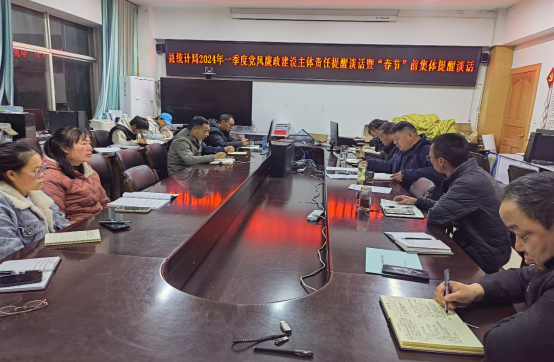 2月5日,武定县统计局开展2024年一季度党风廉政建设主体责任提醒谈话暨“春节”前集体提醒谈话,谈话由党组书记张俊平同志主持开展,县统计局全体干部职工参加。