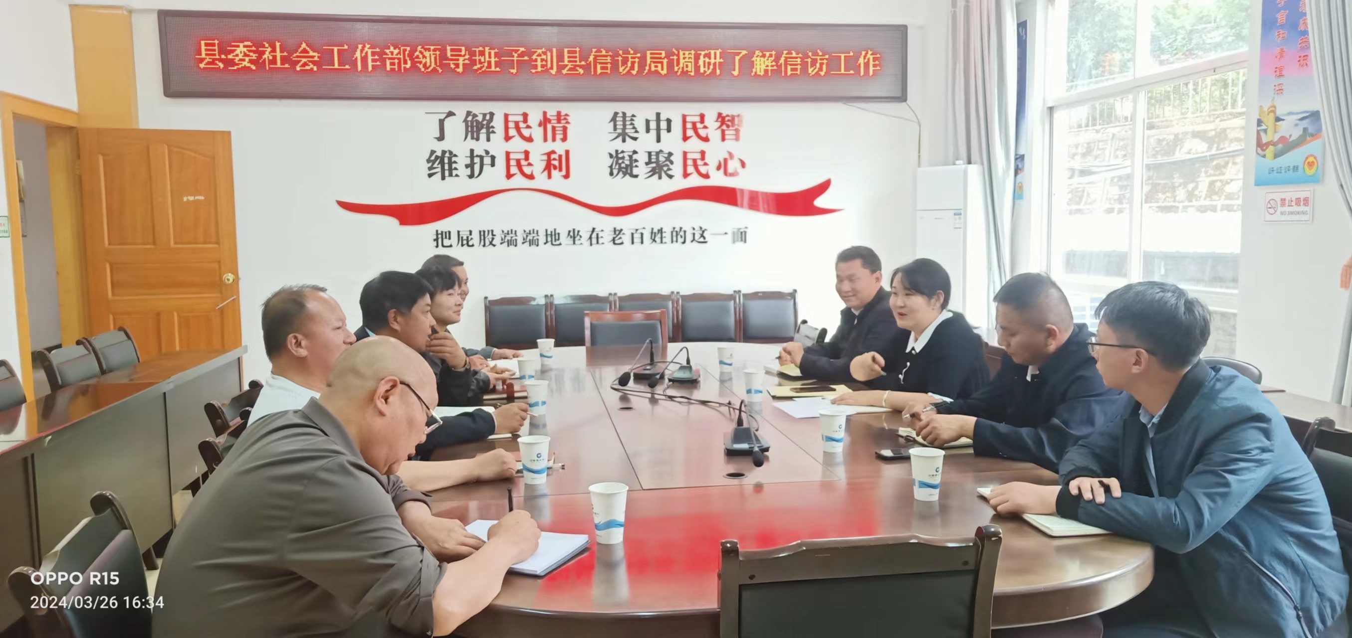 县委社会工作部副部长、县信访局党组书记、局长,县委社会工作部领导班子全体成员,县信访局全体干部职工参加调研。