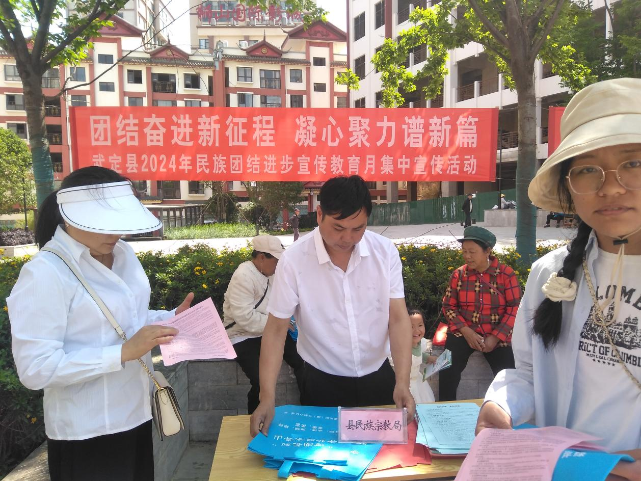 为扎实深入推进普法强基补短板专项行动,认真履行“谁执法谁普法”的职能职责。4月12日,武定县民族宗教事务局紧扣“铸牢中华民族共同体意识”工作主线,精心组织,在武定狮山大道法治文化广场开展“民族宗教政策法宣传月暨民族团结进步宣传教育月”集中宣传活动。