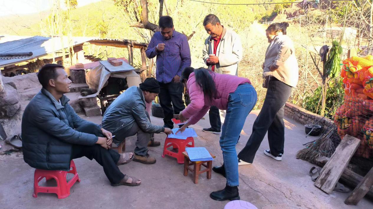 在麦地冲村委会,信访局一行与驻村第一书记张文红、村党总支书记李生光进行交谈;与村“两委”班子成员及驻村工作队员进行座谈,详细听取今年帮扶工作情况,了解麦地冲村委会涵盖的自然村、户数、人数、三类人员、外出务工人员等最新情况,了解党支部、党小组、党员队伍建设等情况,了解防返贫动态监测、政策兑现、脱贫人口增收、群众务工、看病就医、子女就学就业等情况,了解群众矛盾纠纷排查化解、群众信访情况,了解本村特色产品、有发展潜力的产业、乡村振兴、村集体经济发展等工作开展情况和存在的困难,共同商讨解决办法,同时对驻村工作队员的工作和生活情况进行详细了解,并就下一步如何发展特色产业、壮大集体经济、改善人居环境、提升村容村貌、构建和谐村庄等方面进行交流探讨。