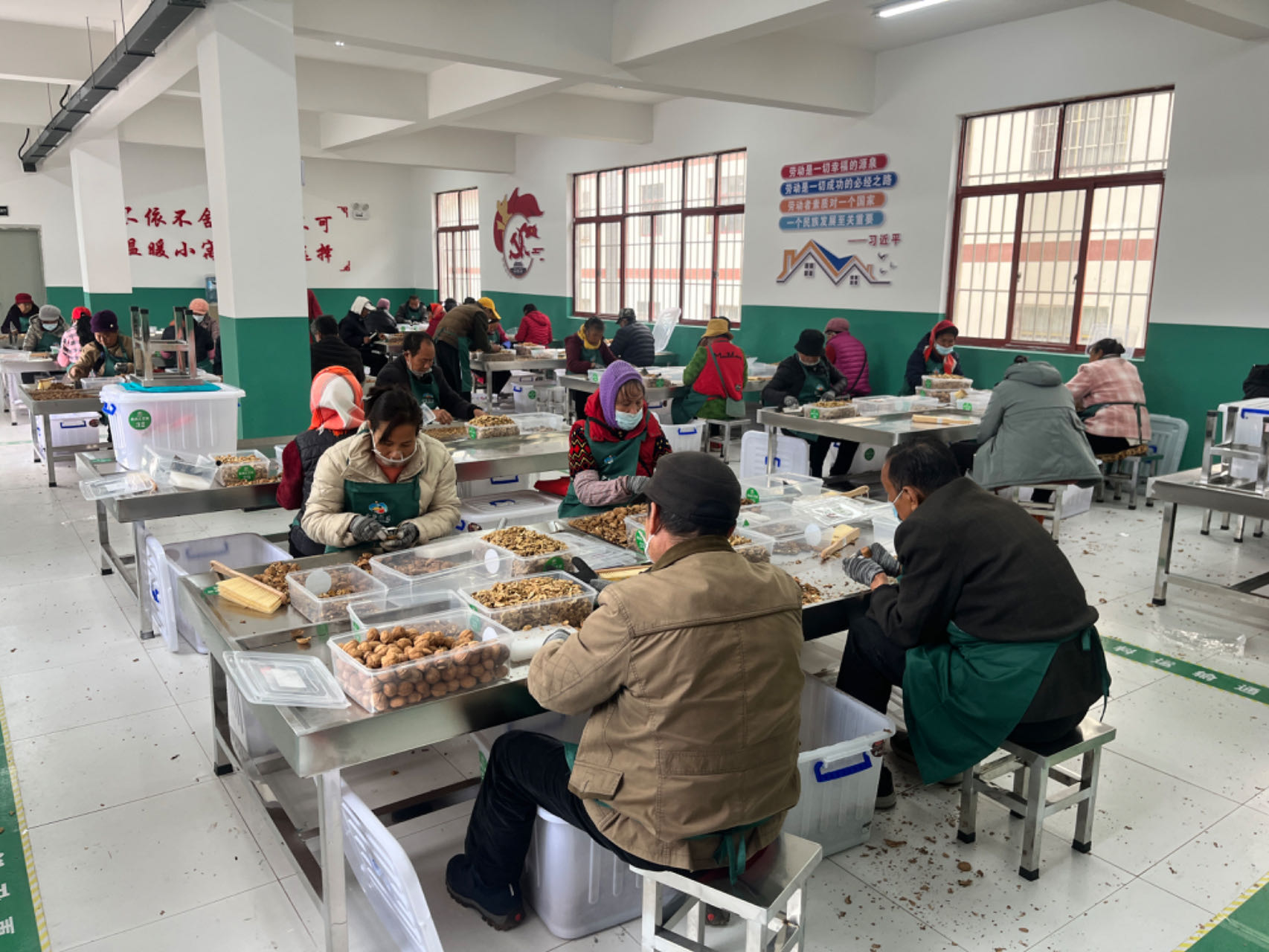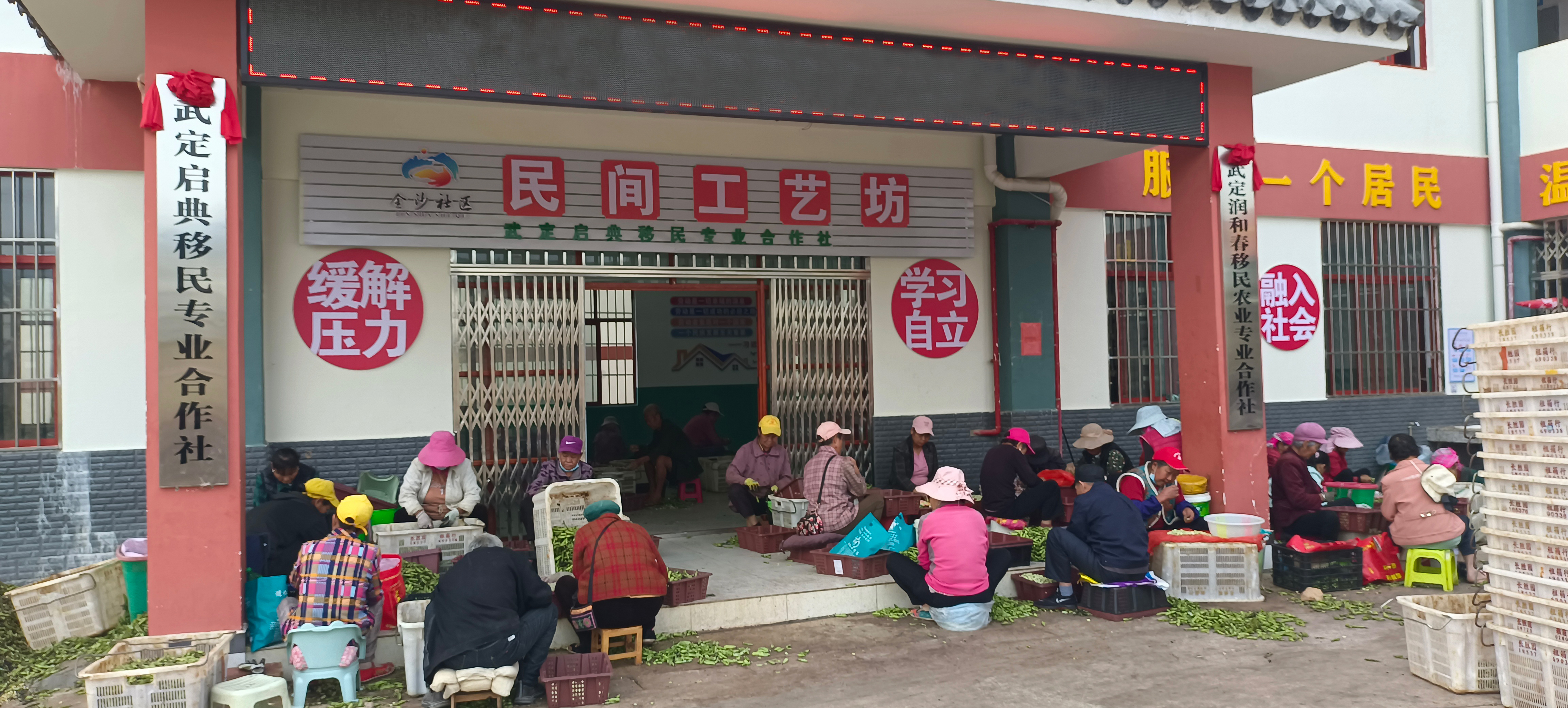 在此基础上,社区还成立了“武定启典移民合作社金沙社区民间工艺坊”,在老年群体的期盼中孕育而生,以金沙社区党总支牵头成立的合作社,依托乌东德水电站移民产业扶持政策,建立民间工艺坊,以不同时期的核桃初加工、果蔬初加工等轻松、易做的手工活为主,就业方式灵活,采用即到即做,即走即结的工资结算方式,避免了就业不能顾家、顾家零元收入的矛盾关系。今年以来,已带动2664人次的大龄劳动力和难以外出务工的就业困难人员从事核桃加工2800公斤,获得务工收入6118.98元;从事分拣辣椒139180公斤,为群众带来务工收入48739元;从事剥青蚕豆17823.2公斤,为群众带来务工收入31473.36元。