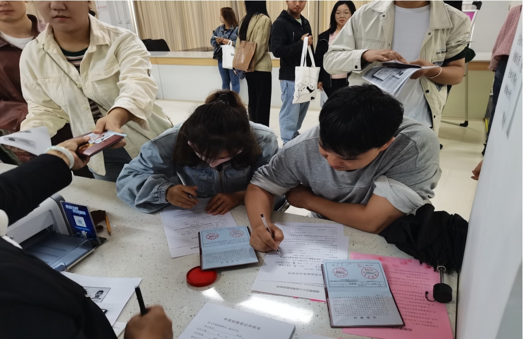 早部署,为爱服务。为保障现场秩序、取号、等待呼号、预检登记材料等服务工作,县政务服务局3日前安排4名工作人员熟悉工作流程,协助“520”当天婚姻登记服务工作;为缩短办证群众等候时间,在原有窗口工作人员的基础上,“520”当天婚检服务增加5名工作人员、婚姻登记窗口增加2名工作人员协助引导、检测、填表等工作。