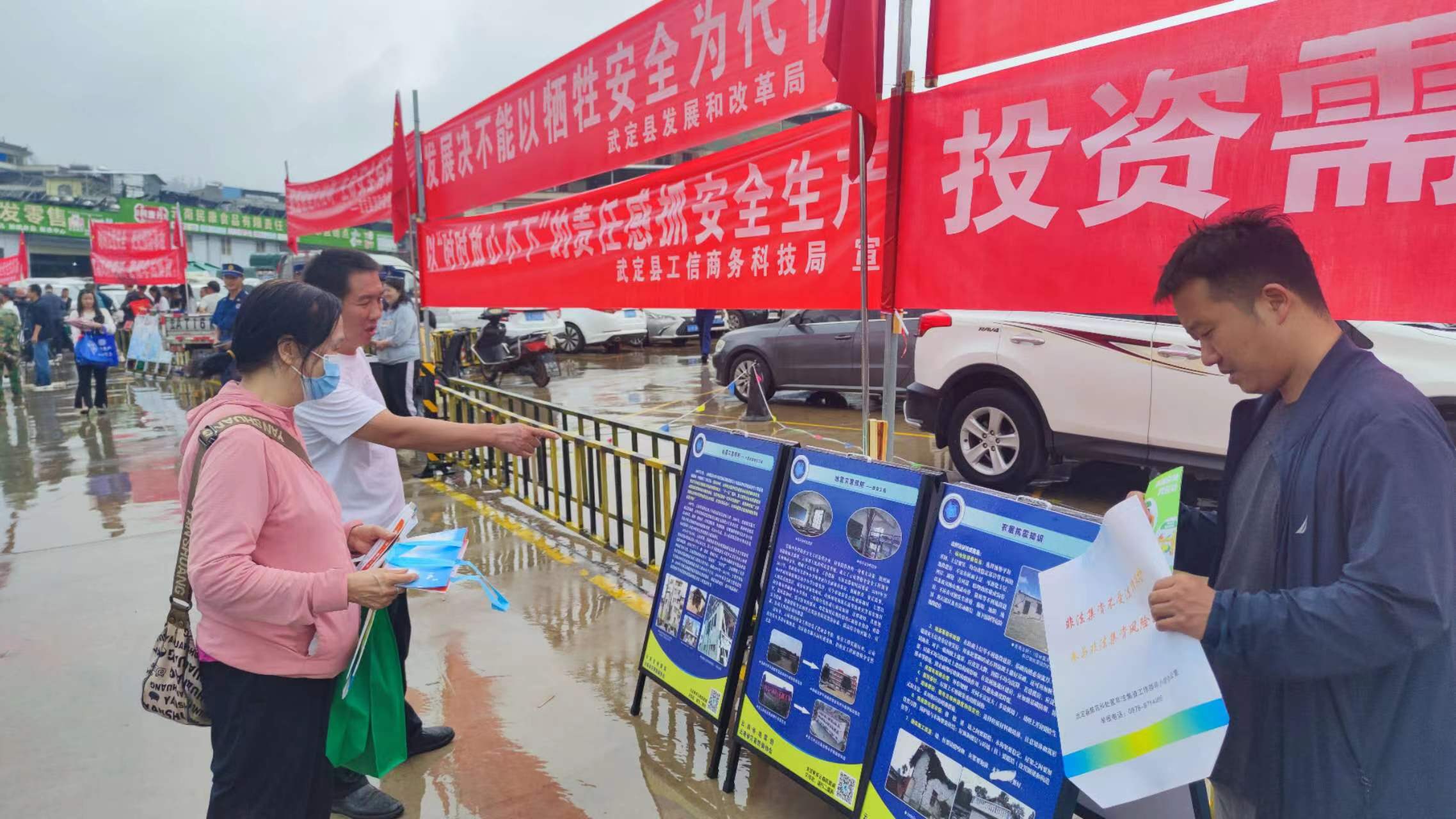 根据武定县安全生产委员会办公室《武定县安全生产委员会办公室关于开展武定县2024年“安全生产月”活动的通知》(武安办函〔11〕号)文件要求,2024年6月16日上午8:30至11:00,“安全咨询日”活动在武定县城北农贸市场举行。今年的“安全宣传咨询日”以“人人讲安全,个个会应急—畅通生命通道”为主题,重点面向社会公众和从业人员,集中宣传安全知识和避险逃生技能等科普知识。武定县地震局派出钱虎副局长带领三人全程参与此次宣传活动。