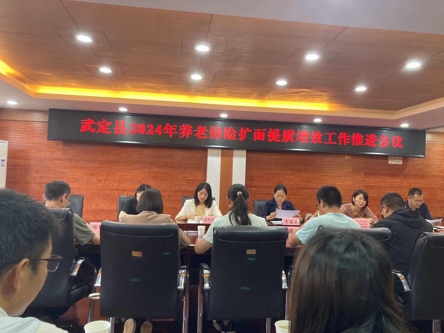 为动员各乡镇齐心协力完成好2024年度养老保险扩面提质增效各项任务,确保养老保险扩面提质增效各项指标任务圆满完成,6月24日,武定县人力资源和社会保障局召开养老保险扩面提质增效工作推进会。县人力资源和社会保障局主要领导、分管领导和业务人员、税务局分管领导和业务人员以及全县11个乡镇社保工作负责人参加会议。