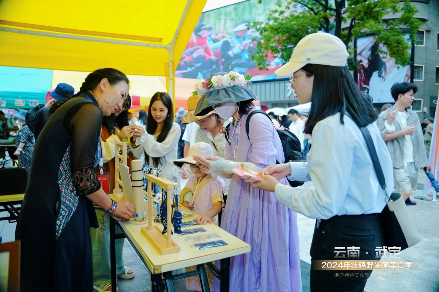 活动现场,45家参展企业以丰富的特色美食、具有本地特色的农副产品、彝族元素文创产品和独具魅力的彝族歌舞,吸引了大量市民驻足流连,品武定美食,赏民族歌舞。