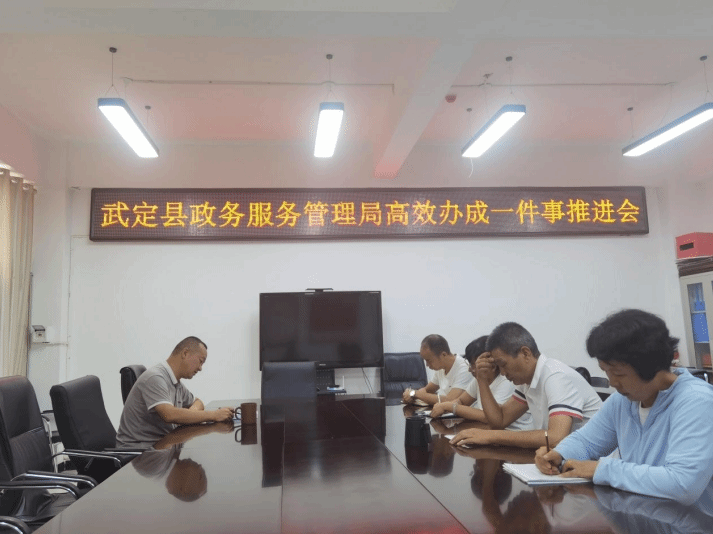 2024年8月8日上午,武定县政务服务管理局副局长曾红春组织召开武定县政务服务管理局高效办成“一件事”工作推进会,我局经济类审批股相关窗口工作人员参加会议。