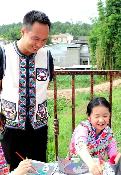我爸不仅有责任心、事业心,他还是个有童心爱心的“法律明白人”。每到学生一放假,我爸便会购买画笔、颜料、泥瓦片等材料,组织村里的留守儿童开展法治文化手绘活动,有的画的是我们美丽的村子,在蓝蓝的天空上就单写一个稚里稚气的“法”字。有的简单画个背景,就光写上“遵纪守法”四个字,说要遵守法律法规。我的同学黄廷敏画的是几朵向日葵,在花的中央画的是一面国旗,国旗下有个小人,她说是她自己。我画的是一个小朋友和宪法,我们老师说过,宪法是国家的根本大法。这些手绘是最珍贵的“法宣品”,被我爸一一展示在法治文化广场旁的巷子里,也是对大家法治文化的启蒙和熏陶。对年纪尚小的小朋友,我爸则手把手进行辅导,虽然颜料弄脏了“法律明白人”小马甲,但他脸上始终藏不住对留守儿童的爱。我特别佩服他的是将常用法律编成“悟尼格村学法三字经”做成展板竖在法治小广场上,时不时组织我们朗读,“学宪法,是第一,根本法,最重要。尽义务,享权利,讲法治,莫忘记。”是其中一句,我都会背了。