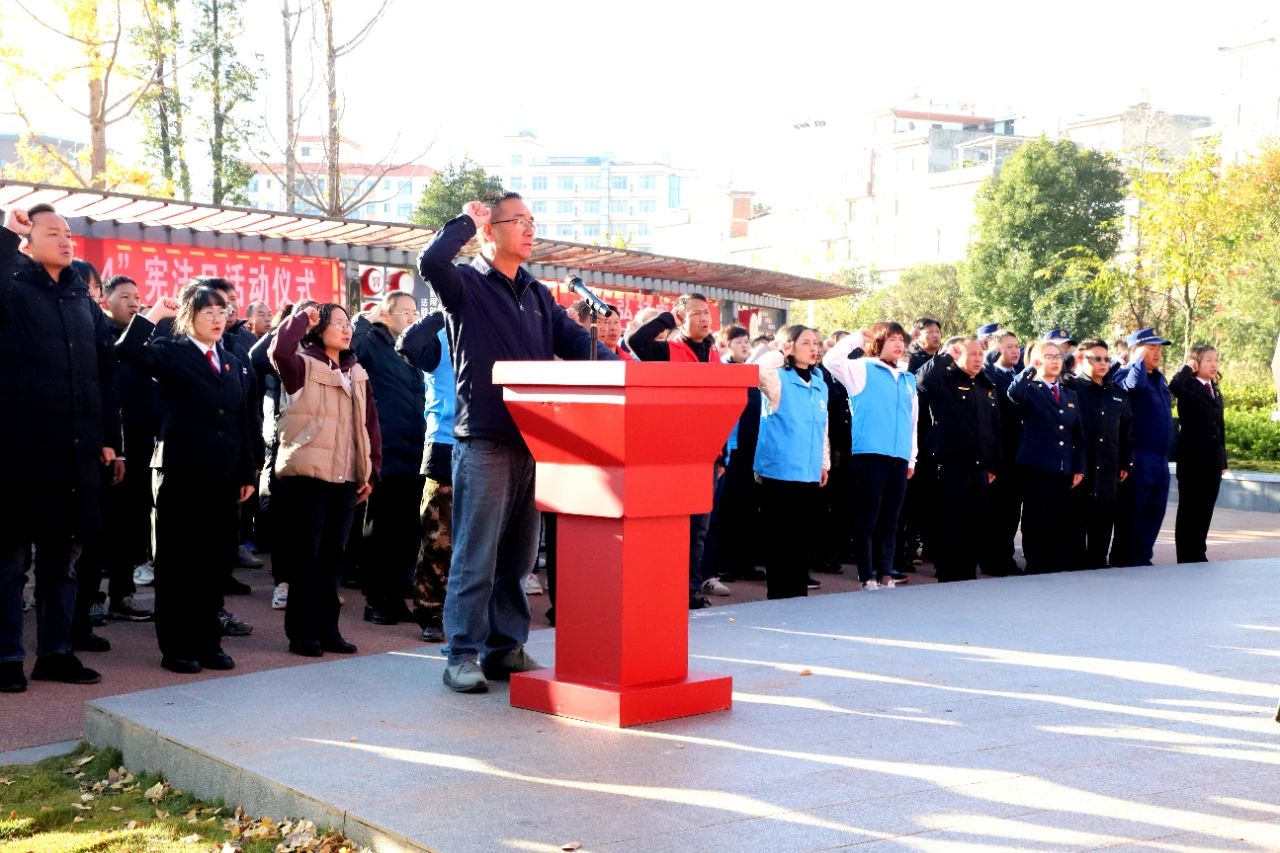 “我宣誓:忠于中华人民共和国宪法,维护宪法权威,履行法定职责……”,声声誓词响彻云霄,参加活动的全体人员带着对宪法的崇敬和敬畏,列队站立庄严向宪法宣誓。12月4日,武定县党员干部在乌龙河法治文化主题公园宪法宣誓广场举行宪法宣誓仪式。宣誓仪式结束后开展了宣传活动,活动现场设置了法律咨询台、宣传展板,向广大群众宣传普及宪法相关知识,为群众提供面对面法律咨询。通过群众喜闻乐见的方式,广泛宣传宪法相关知识,增强全社会宪法意识,弘扬宪法精神,维护宪法权威,营造尊法、学法、守法、用法的良好氛围。