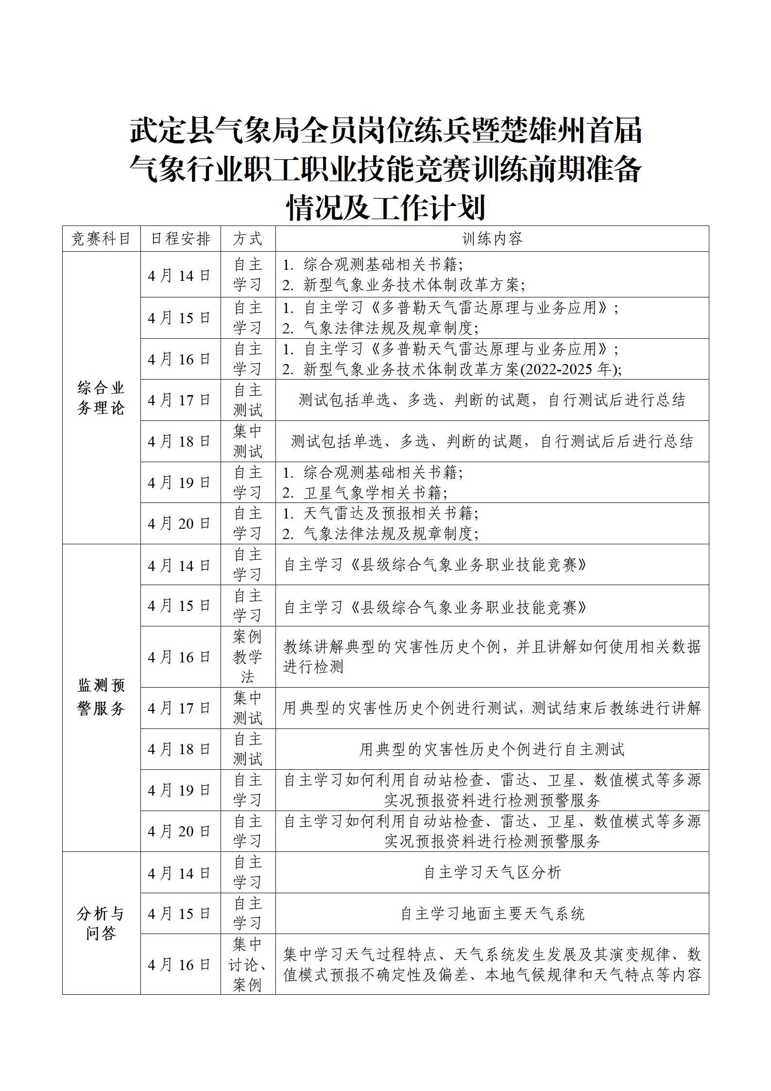 一是领导高度重视,精心组织备赛。武定县气象局党组领导班子高度重视楚雄州首届气象行业职工职业技能竞赛,召开3次工作部署会,选优配强县局优秀业务人员参赛,脱产安排1名优秀同志参加湖北天气预报职业技能竞赛培训,激励干部职工踊跃参加业务竞赛,营造浓厚学习氛围。