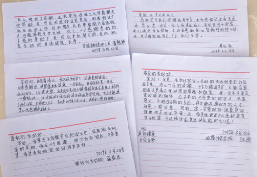 在州干休所驻贺铭村工作队员通过座谈方式,向5名优秀贫困大学生转交李凤英老人的助学款时,受助家庭表达了对党和国家关心关爱贫困学生的感激之情。同时,5名受助学生还分别给李凤英老人写下感谢信,表达感激之情,并表示在学校一定好好学习,将来更好地回报社会,回报家乡,一定不辜负李凤英老人的期待。