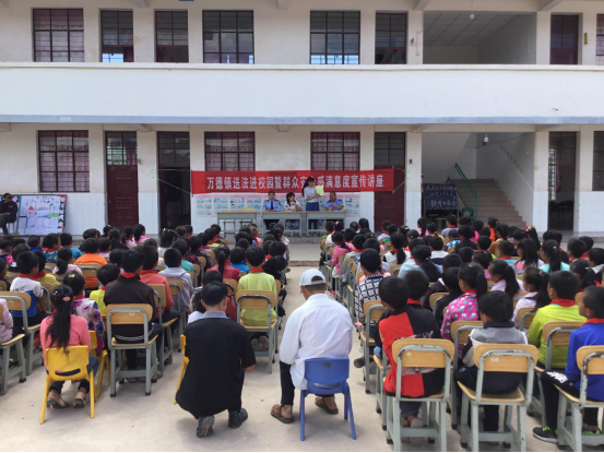 活动中,普法成员从实际案例入手,以通俗易懂的语言分别介绍了司法所、派出所等政法单位的职能职责及工作成效。万德司法所干警尹丽以“创建平安校园,人人有责”为切入点,从本地学生的身边事开篇从预防校园欺凌、未成年人保护等方面以案释法,向全校师生宣传了平安建设的应知应会知识。同时结合正在开展的群众安全感满意度工作,宣传了群众安全感满意度的测评对象、内容及方式,引导全校师生要耐心接听“0871-12340”的测评电话,客观回答问题。