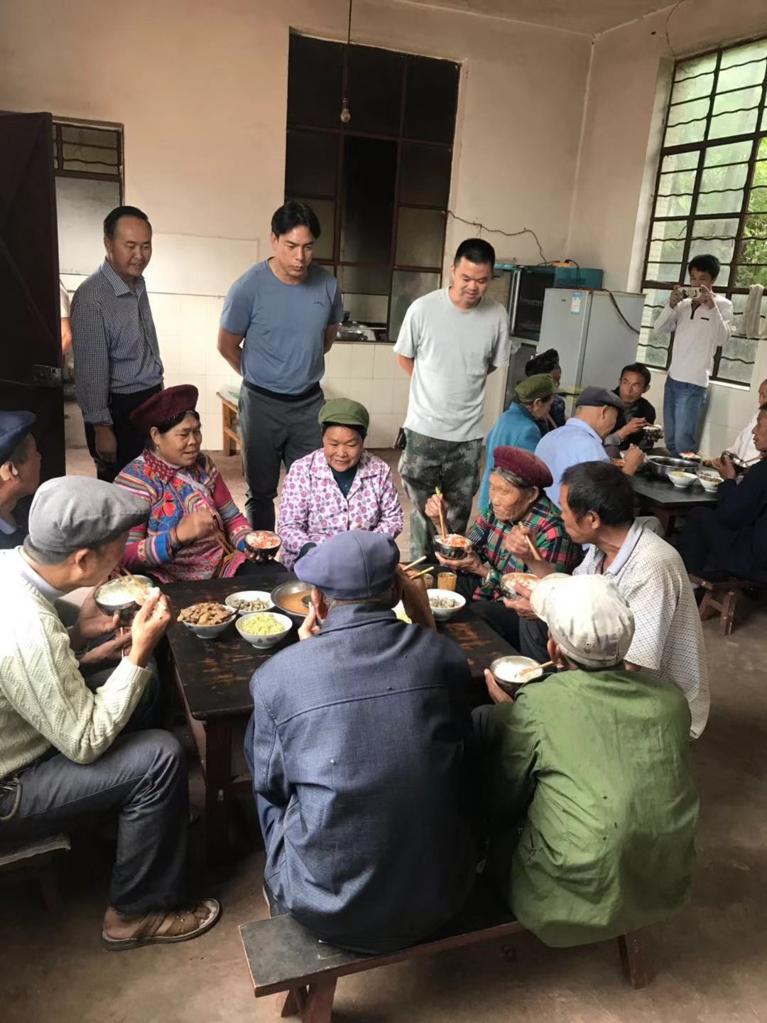 当前我们的脱贫攻坚任务非常艰巨,希望你们一如既往的支持好各级党委政府的工作。现在国家的政策越来越好,你们的生活待遇也在逐年提高,希望你们共享改革发展新成果,安度晚年幸福生活。正值饭点,毕书记走进食堂,查看了老人们的伙食情况和厨房卫生情况,在饭桌前上再次为老人们送上了节日的祝福。在庄房村委会李茂林家,看到老人因病重躺在床上,毕书记走到老人的床边,贴耳询问了老人的病情,为老人送去了300元的慰问金及节日的祝福,并关切的交代老人家属,要时刻关注老人的病情,悉心照料,有困难及时向乡党委政府反映。并让随行的卫生院潘院长对老人病情需要注意的事项给予了提醒和告知。