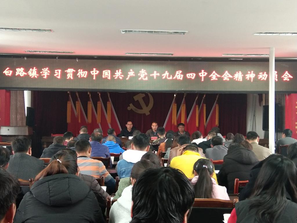 为深入贯彻落实中国共产党十九届四中全会精神,11月11日,白路镇召开学习贯彻中国共产党十九届四中全会精神动员会议。白路镇党政班子、站所全体干部职工、驻村工作队全体成员、村委会三职120余人参加会议。