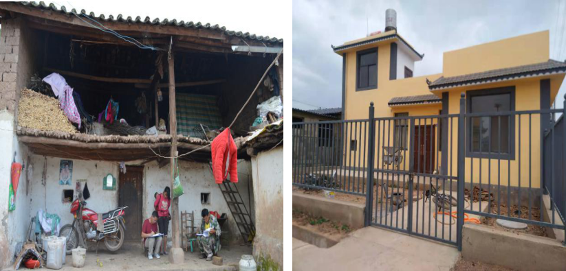 (上图左为:阿过咪村过去的土坯,右为:阿过咪村现在的洋房)